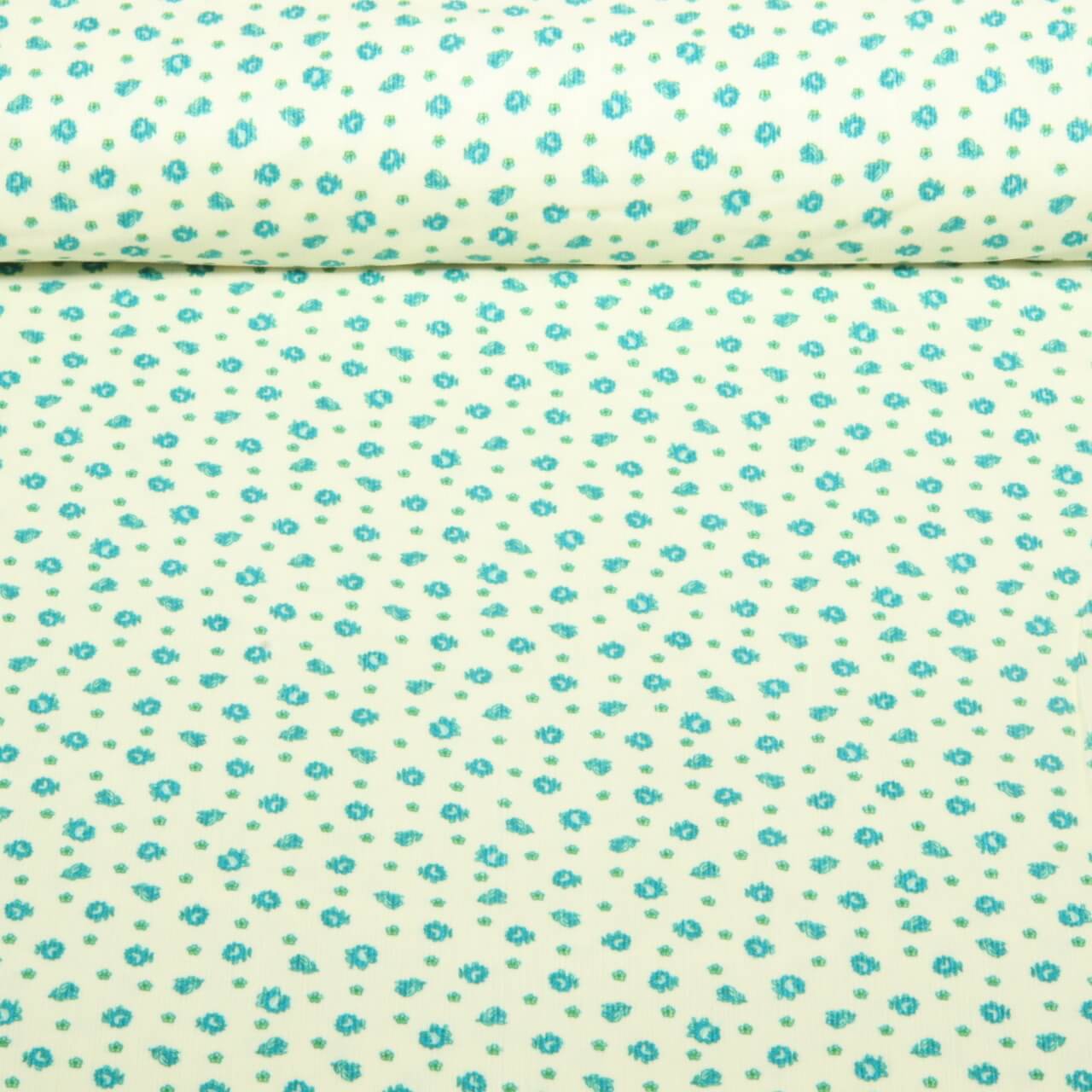 Babycord - Digitaldruck Mille Fleur Ecru Türkis