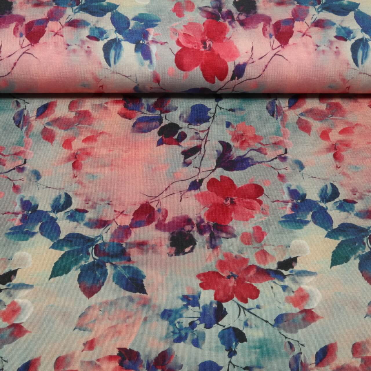 Bambusjersey - Digitaldruck Herbstblätter Blau