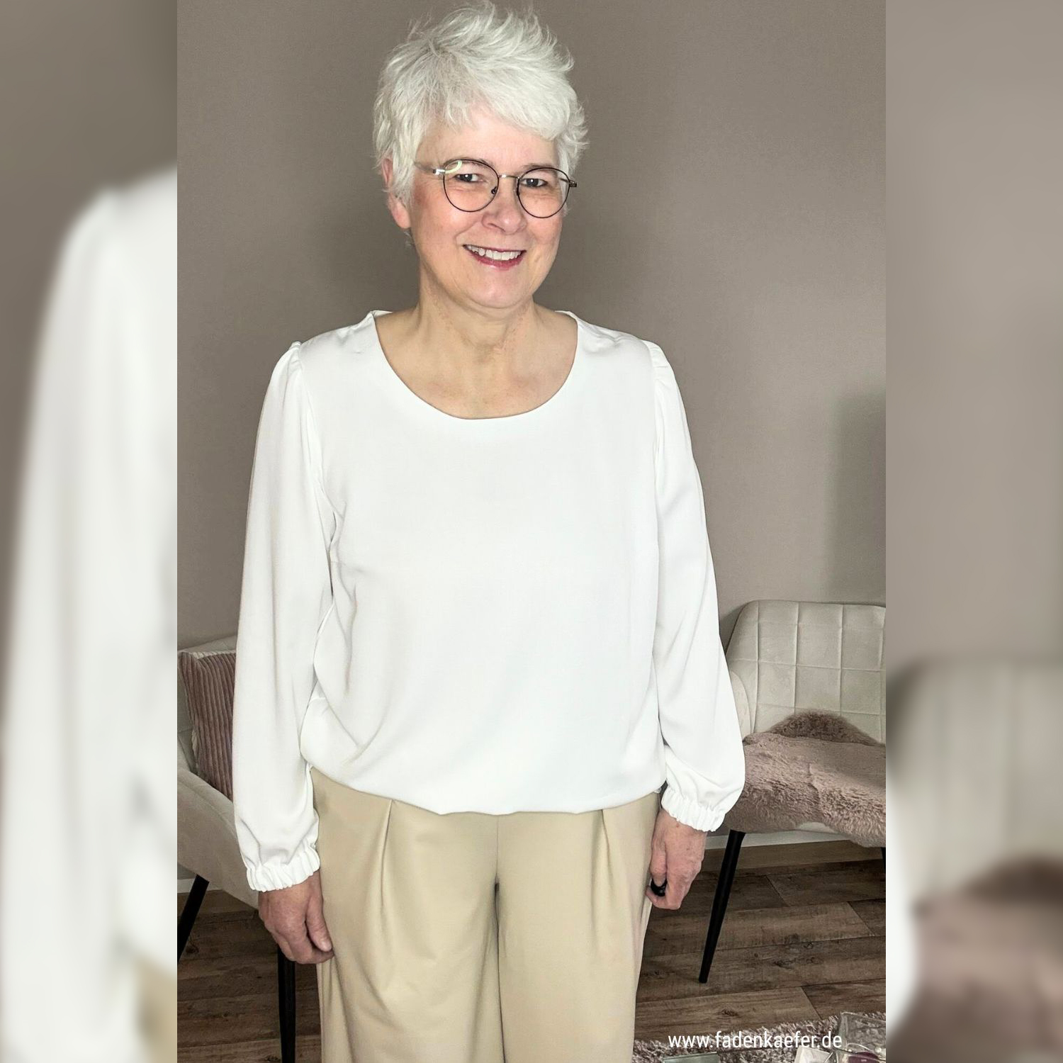 Damit du sofort starten kannst, gibt es zur Basic-Bluse ein ausführliches Nähvideo auf dem Fadenkäfer-YouTube-Kanal. Hier werden alle Schritte anschaulich erklärt.