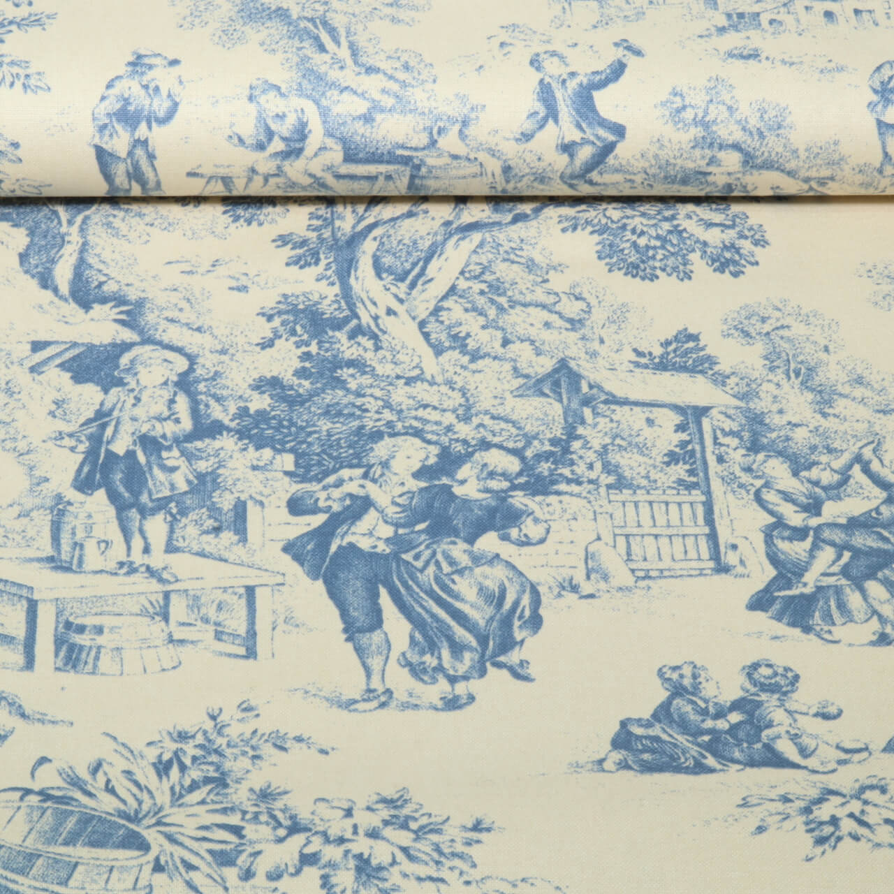 Baumwoll-Canvas - Dorfleben Toile-de-Jouy Beige Blau