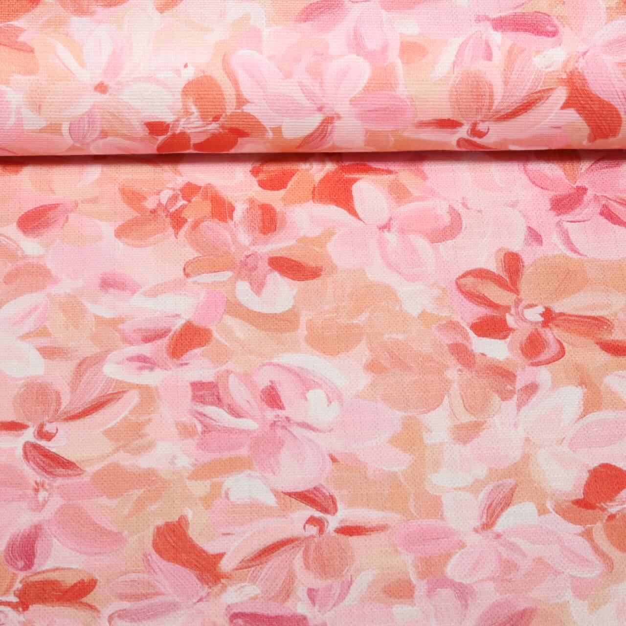 Baumwoll-Canvas - Digitaldruck Slub Blüten Pfirsich