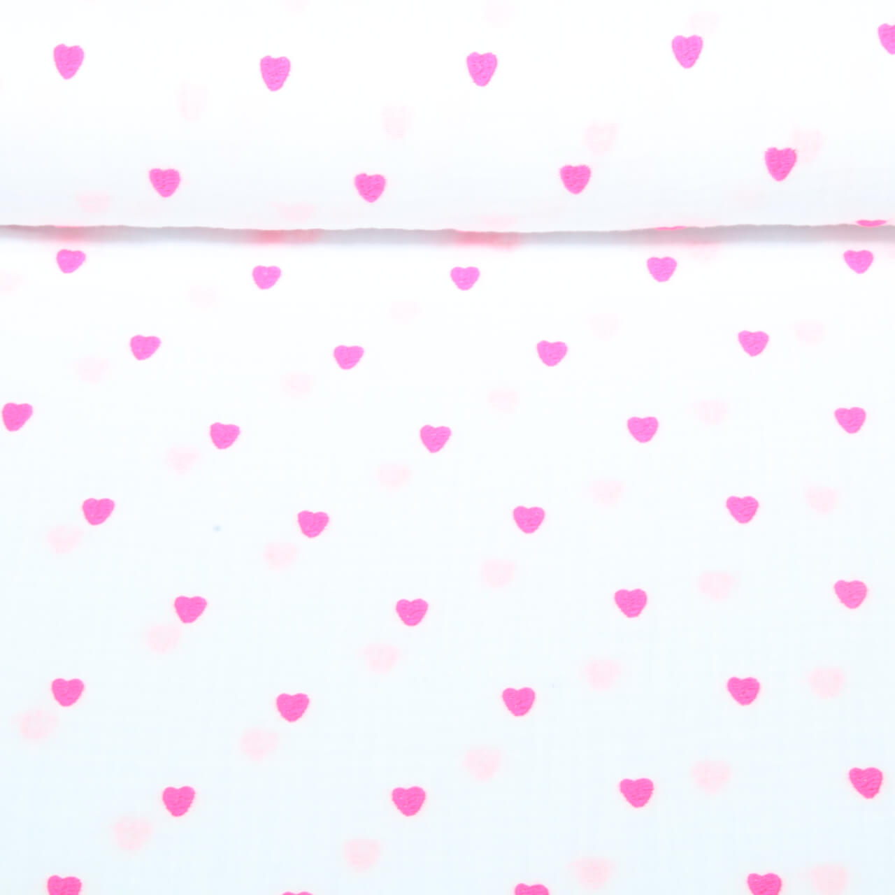 Baumwoll-Musselin - Double Gauze Herzen Neon Bestickt Weiß