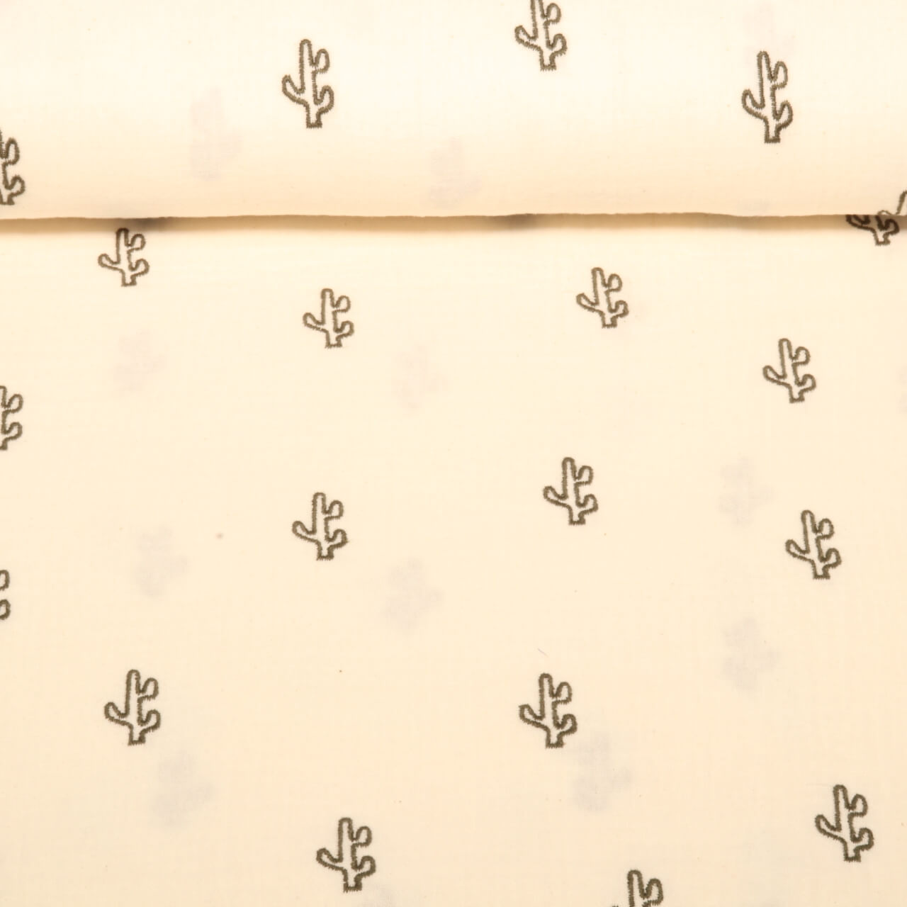 Baumwoll-Musselin - Double Gauze Bestickt Kakteen Ecru
