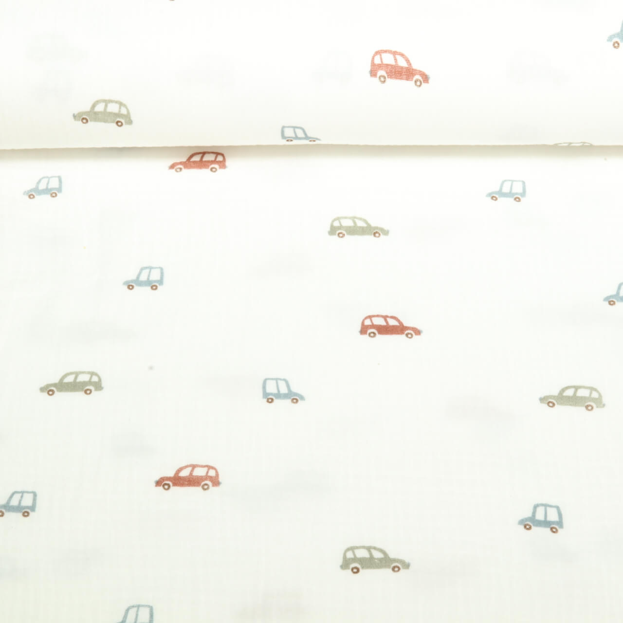 Baumwoll Musselin - Kleine Autos Offwhite