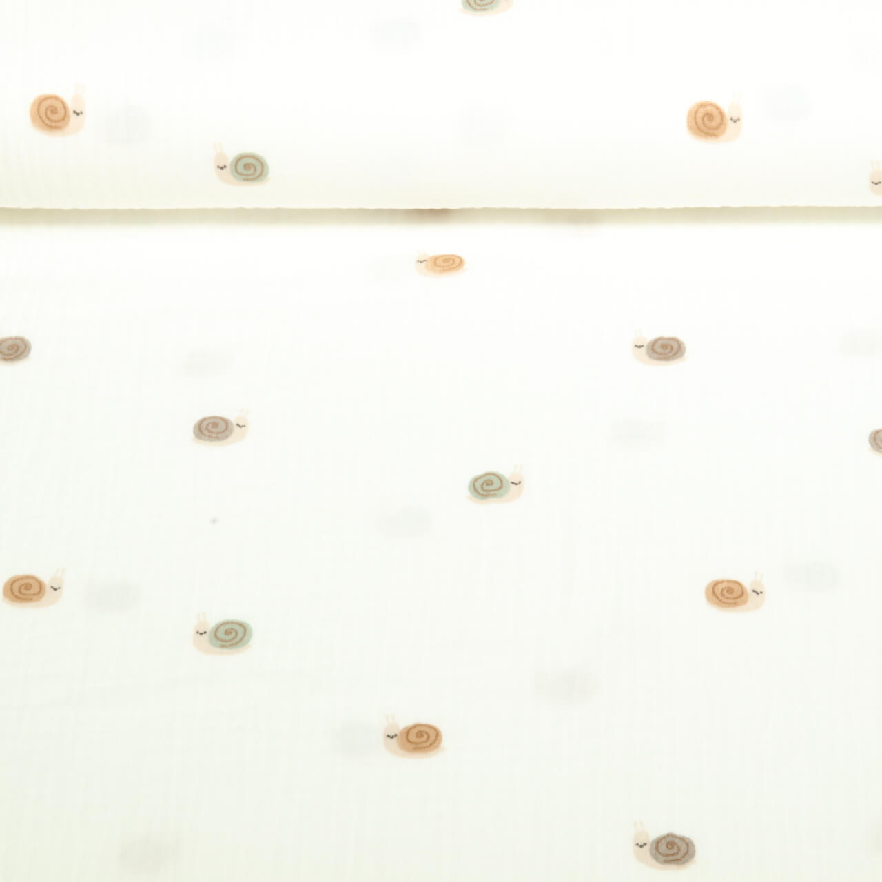 Baumwoll Musselin - Kleine Schnecken Offwhite