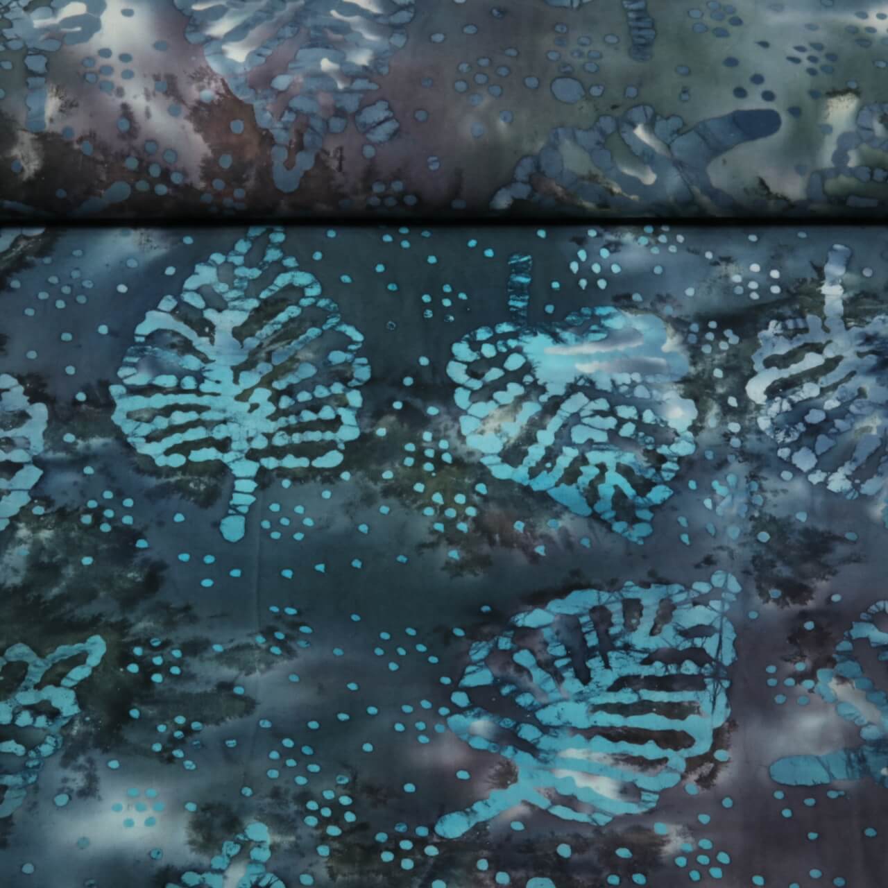 Baumwoll-Popeline - Batik Blätter Blau