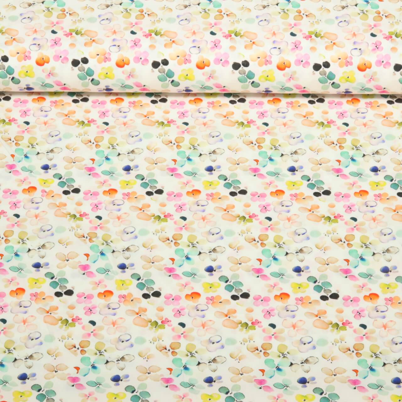 Baumwoll-Popeline - Kleine Blüten Weiß Fuchsia