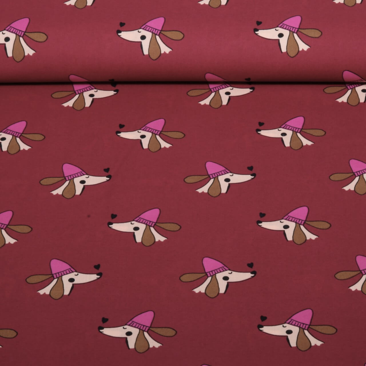 Baumwoll-Popeline - Dackel Mit Herz Bordeaux