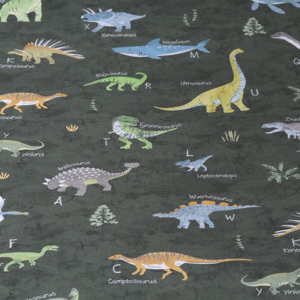Baumwoll-Popeline - Digitaldruck Dinosaurier auf Khakigrün