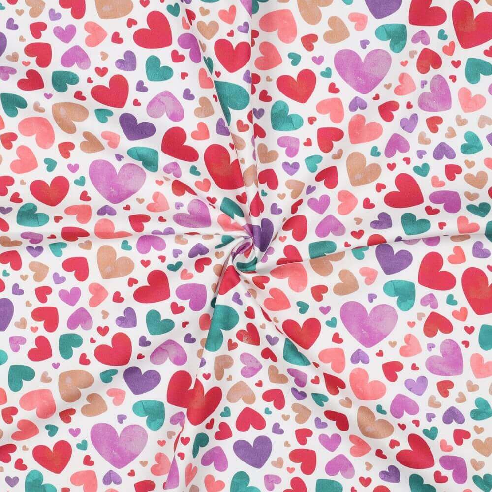 Baumwoll-Popeline - Digitaldruck Herzen auf Weiß