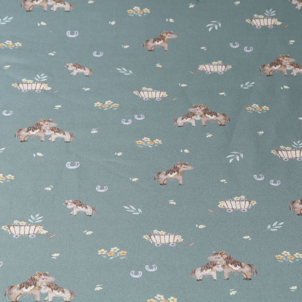 Baumwoll-Popeline - Digitaldruck Pferdeliebe auf Salbeigrün
