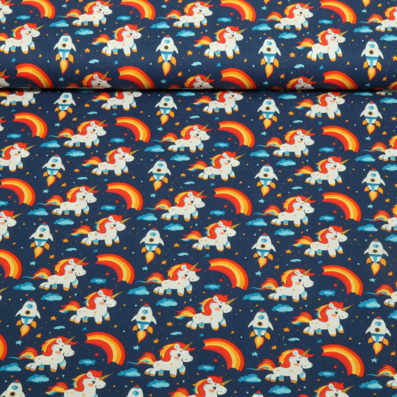Baumwoll-Popeline - Einhörner Raketen Marine