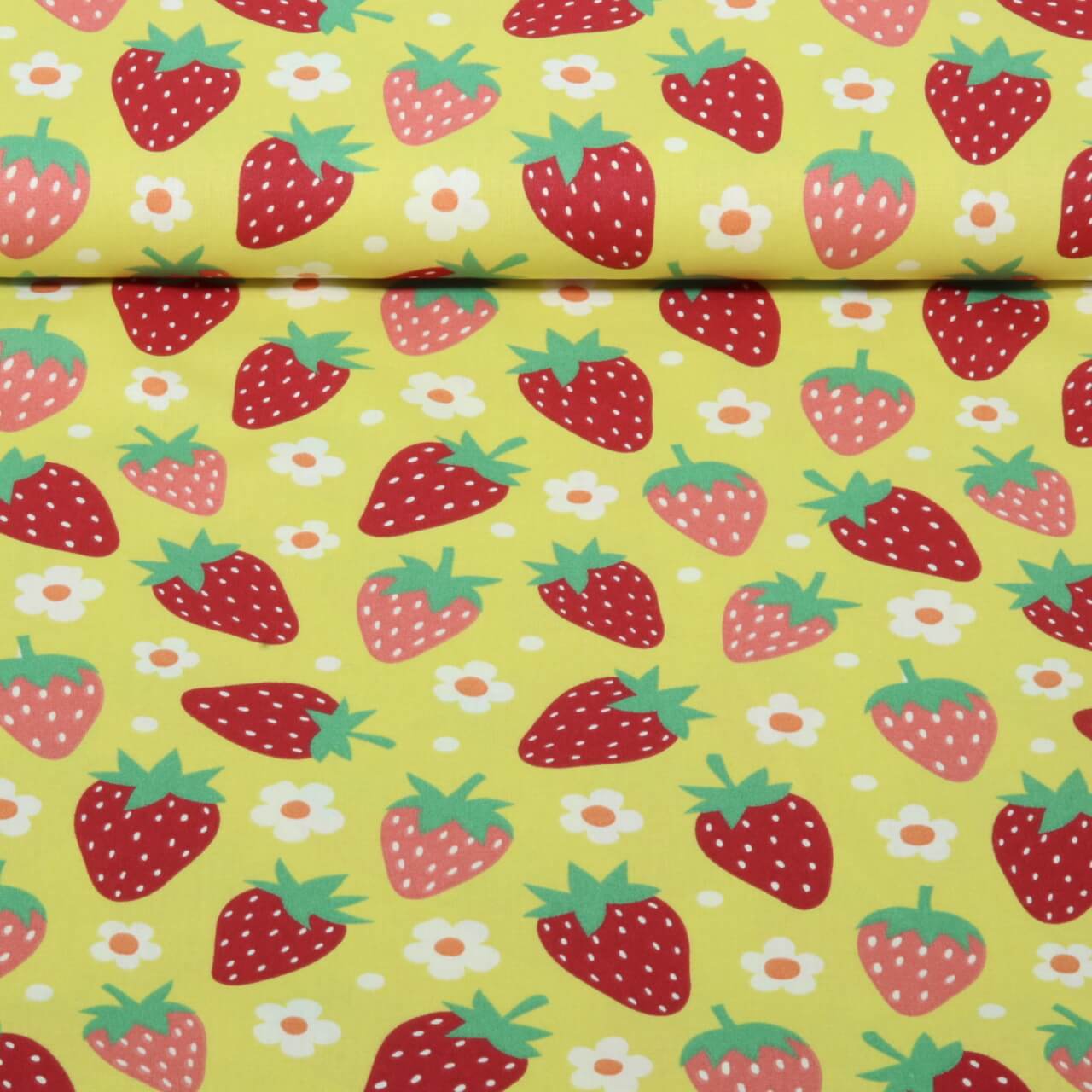 Baumwoll-Popeline - Erdbeeren Gelb Rot
