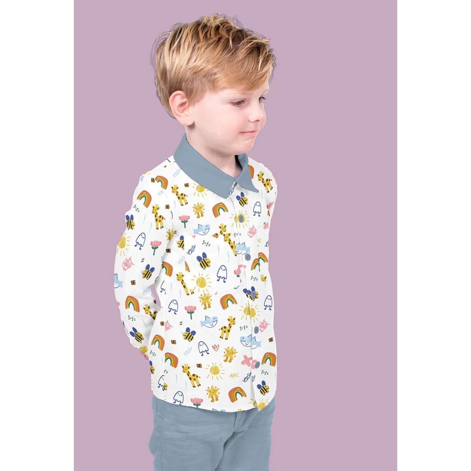 Baumwoll-Popeline - Kindermalerei Tiere Weiß