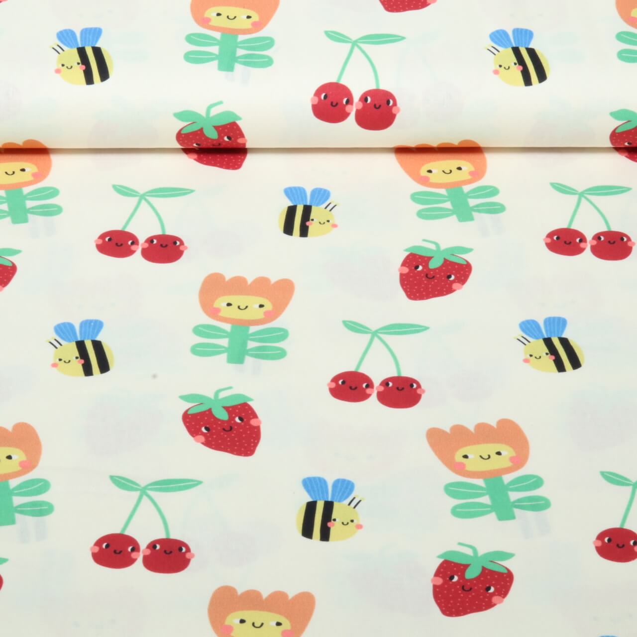 Baumwoll-Popeline - Lustige Früchte Ecru
