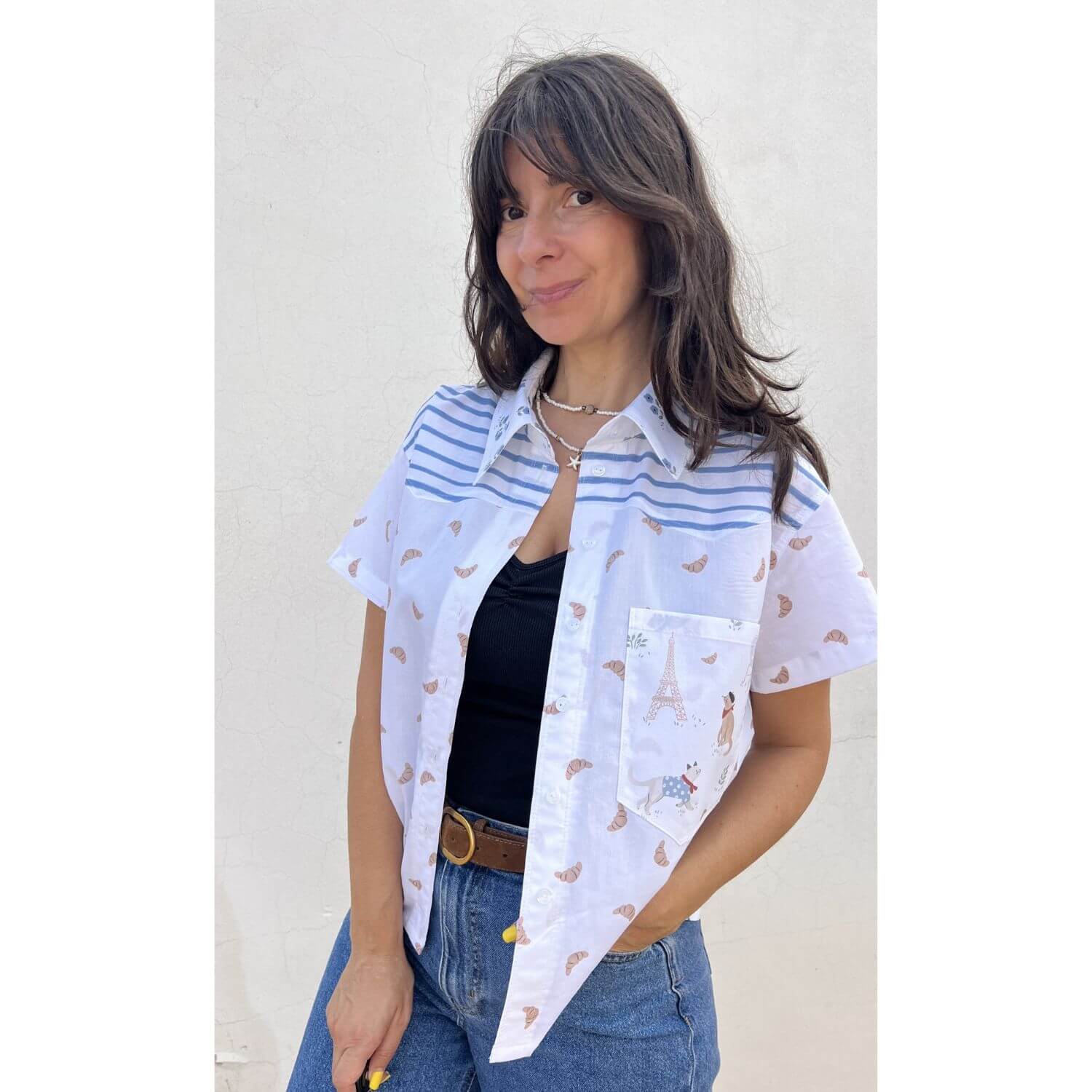 Baumwoll-Popeline - Digitaldruck Paris Streifen Weiß Blau