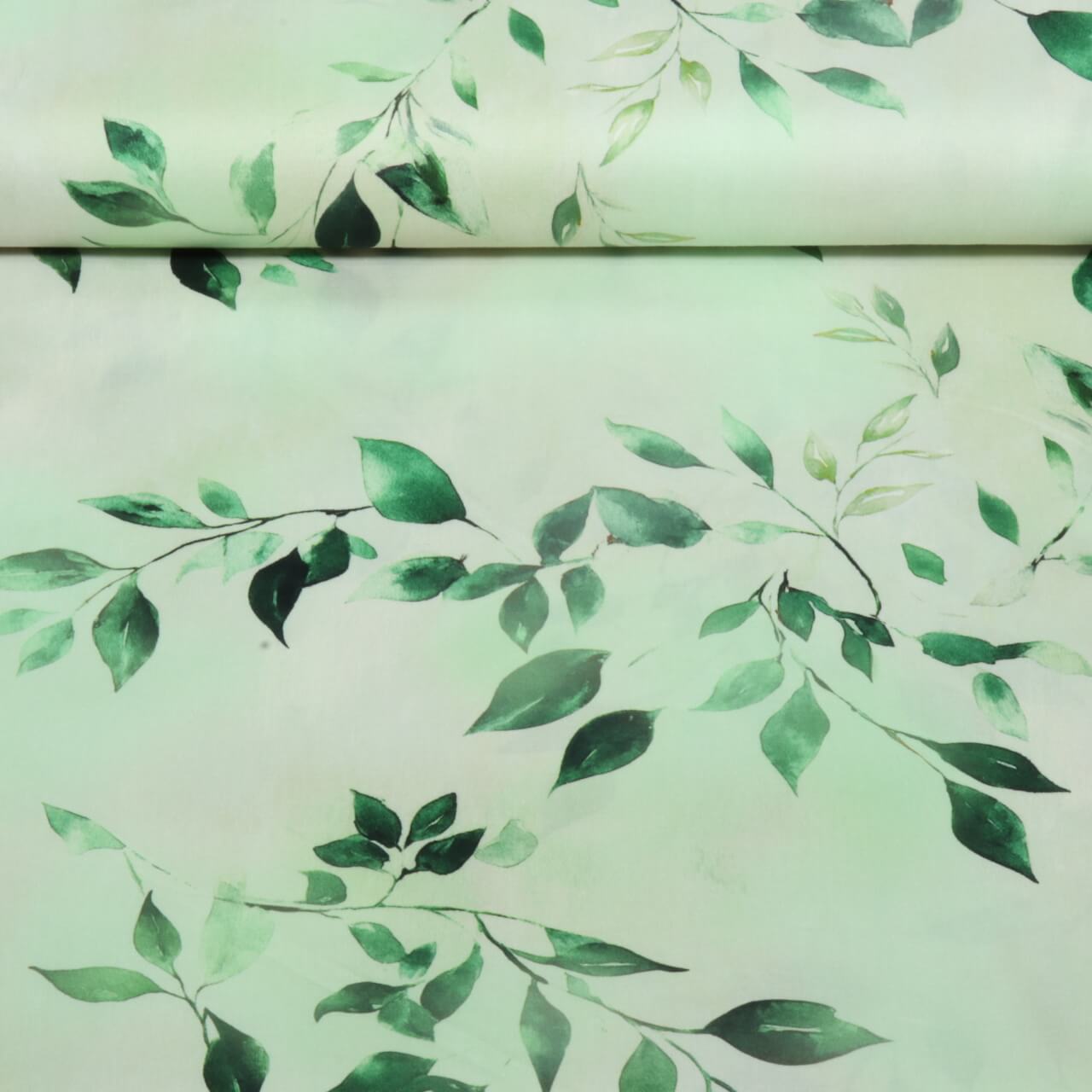 Baumwoll Popeline - Stretch Blätterzweige Grün