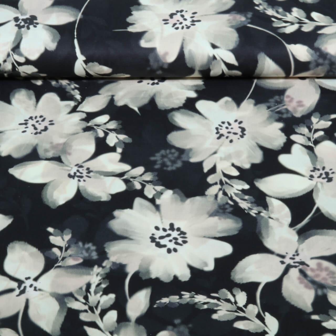 Baumwoll-Viskose - Digital Blumen Schwarz