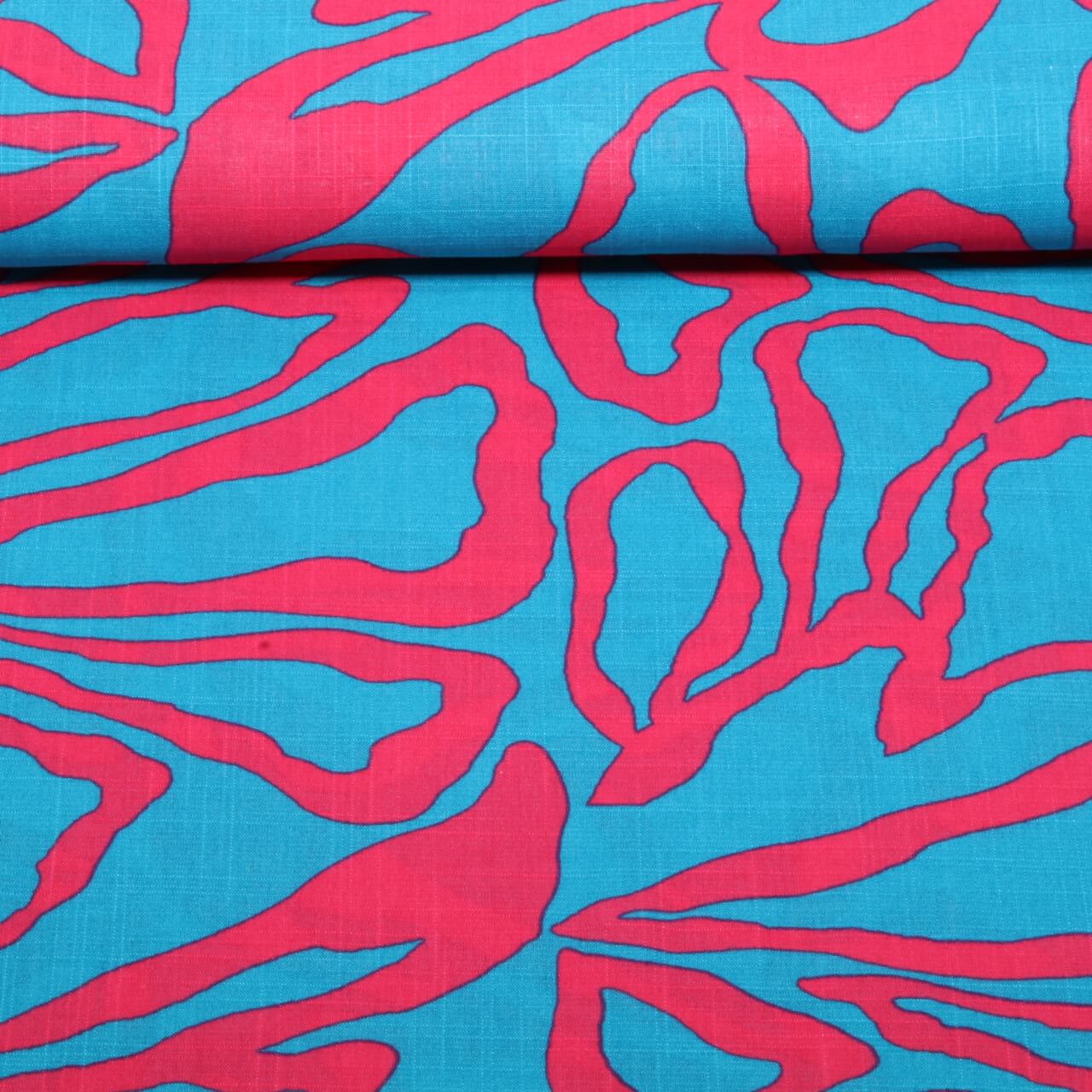 Baumwoll-Viskose Leinenoptik - Große Blüten Petrol