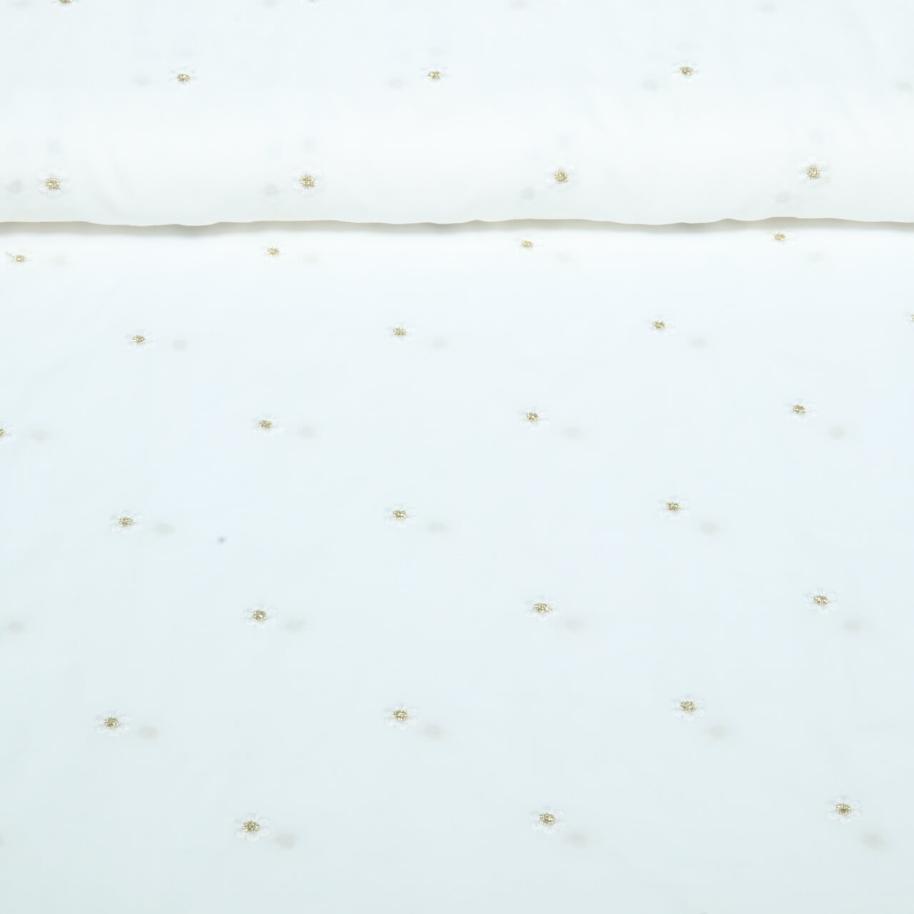 Baumwoll-Voile - Blumen Gestickt Weiß