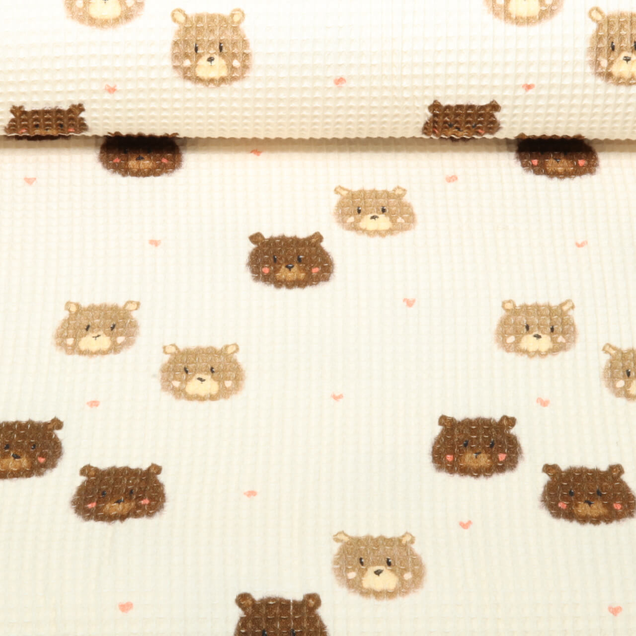 Baumwoll-Waffel - Digital Bärengesichter Beige