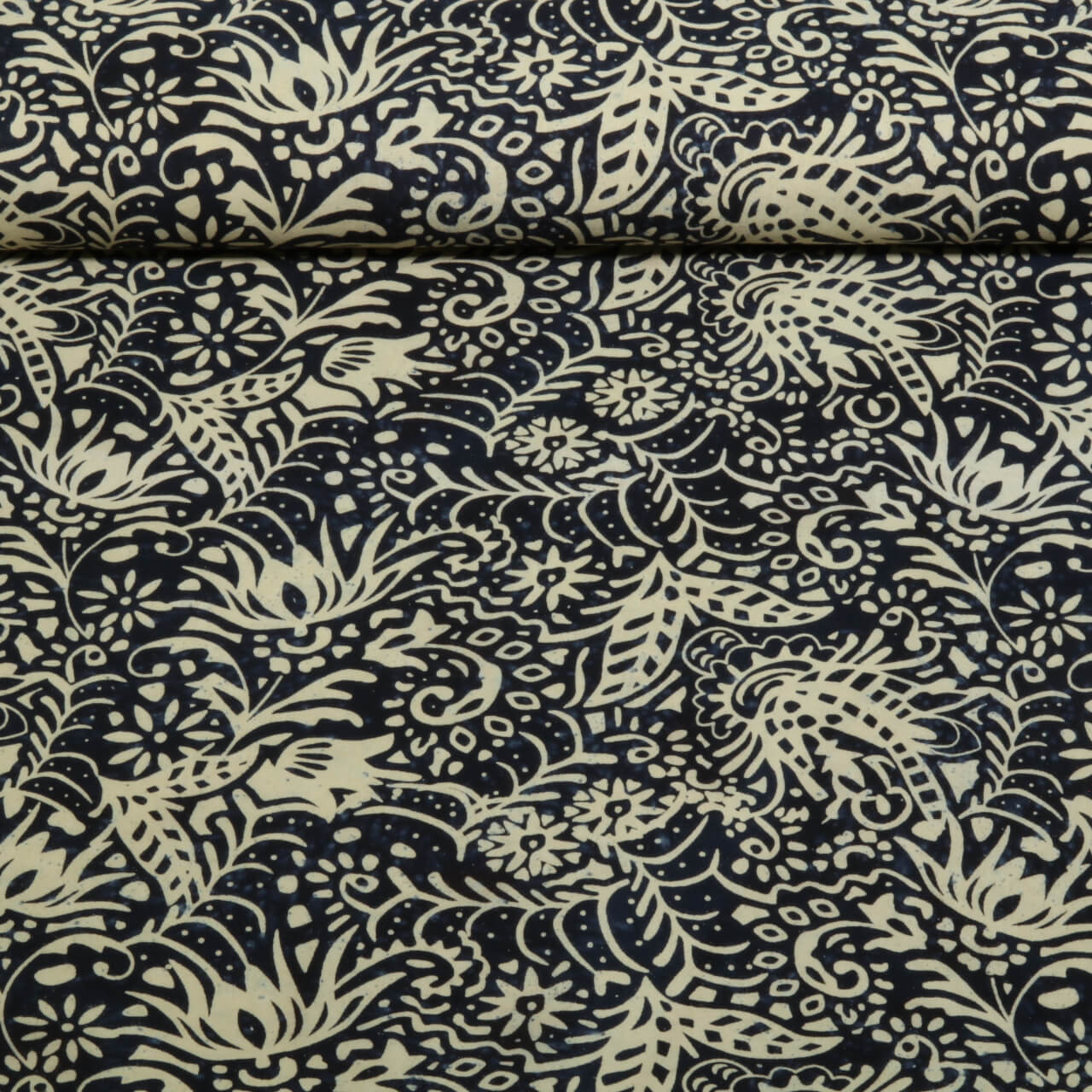 Baumwoll-Webware - Batik Handgefertigt Blumen Marine