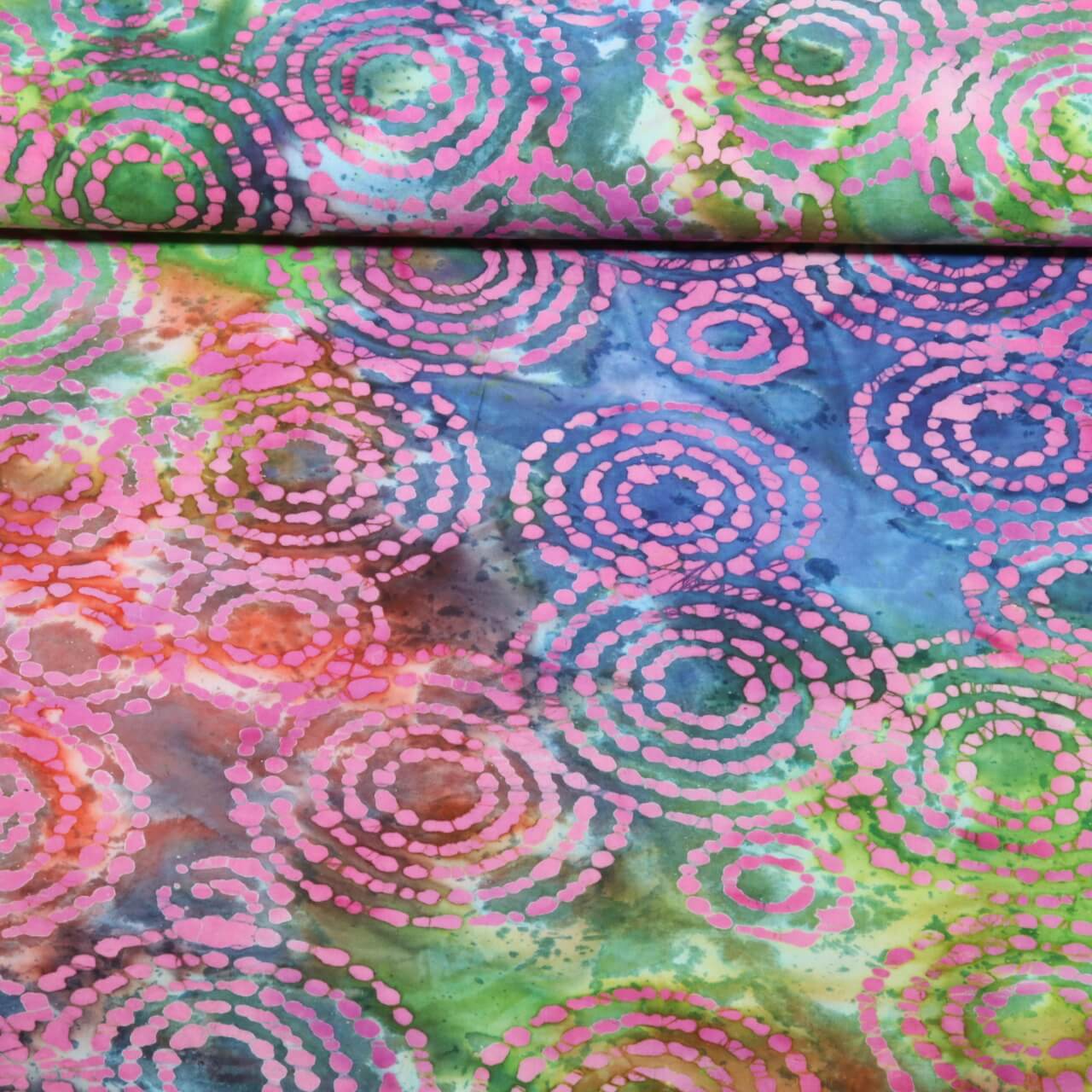 Baumwoll-Webware - Batik Handgefertigt Kringel Multicolor