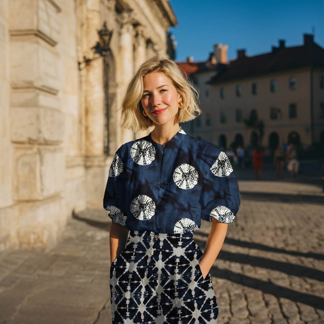 Baumwoll-Webware - Batik Handgefertigt Quadrate Marine