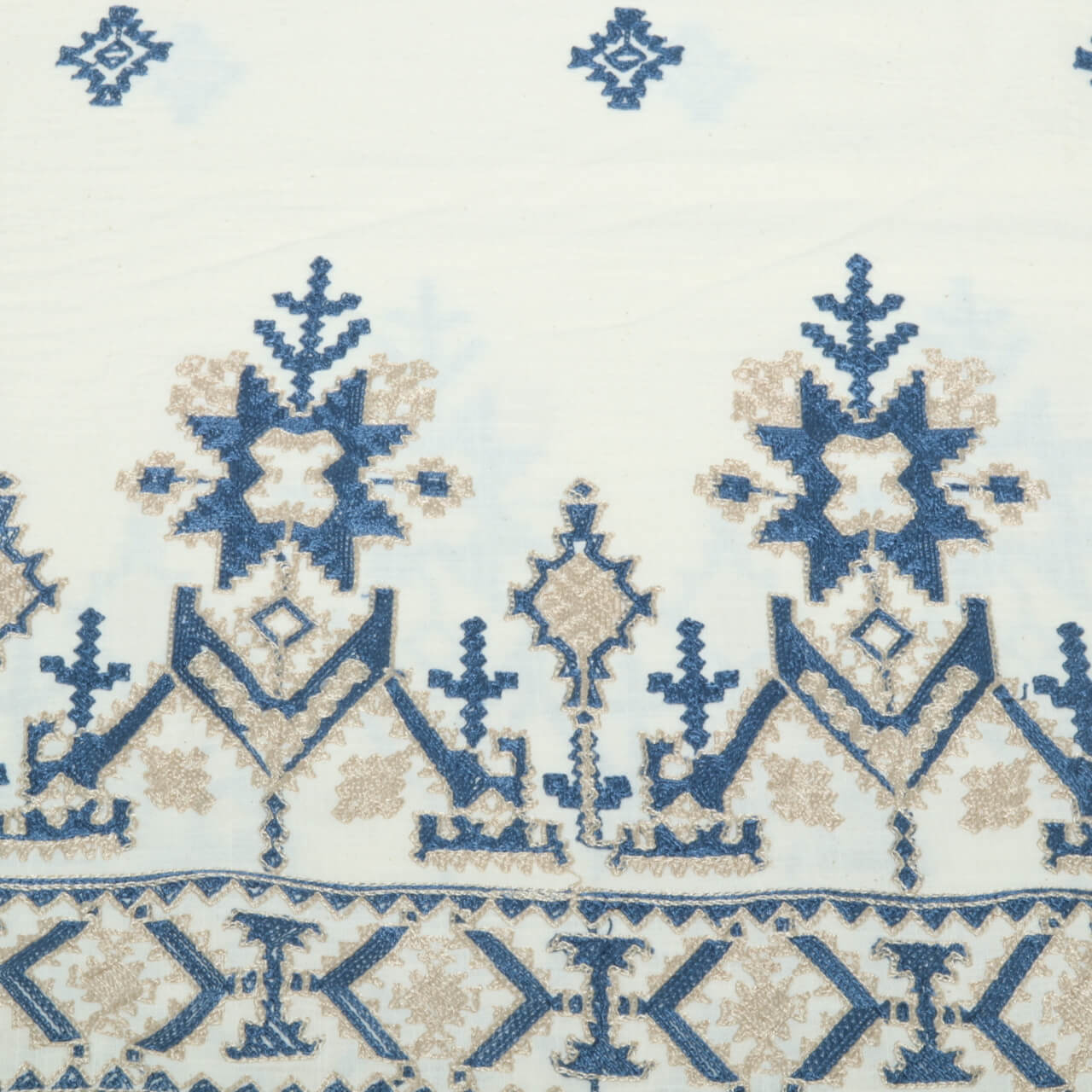 Baumwoll-Webware - Bordürenmix Beige Blau