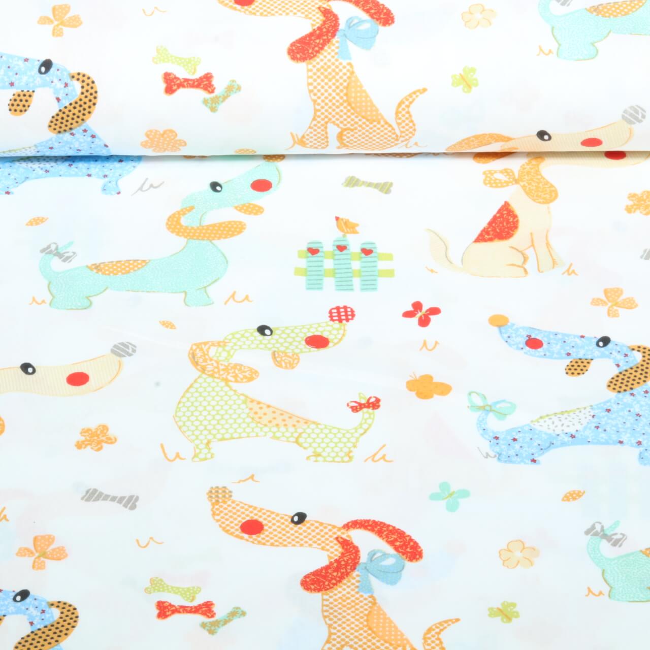 Baumwoll-Webware - Dackel Weiß