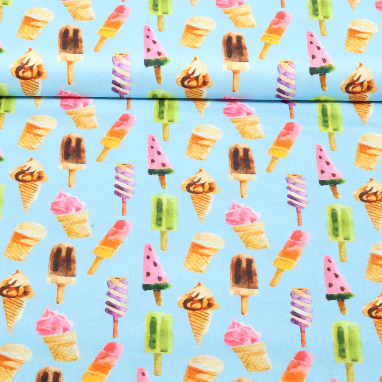 Baumwoll-Webware - Digital Eis am Stiel Hellblau