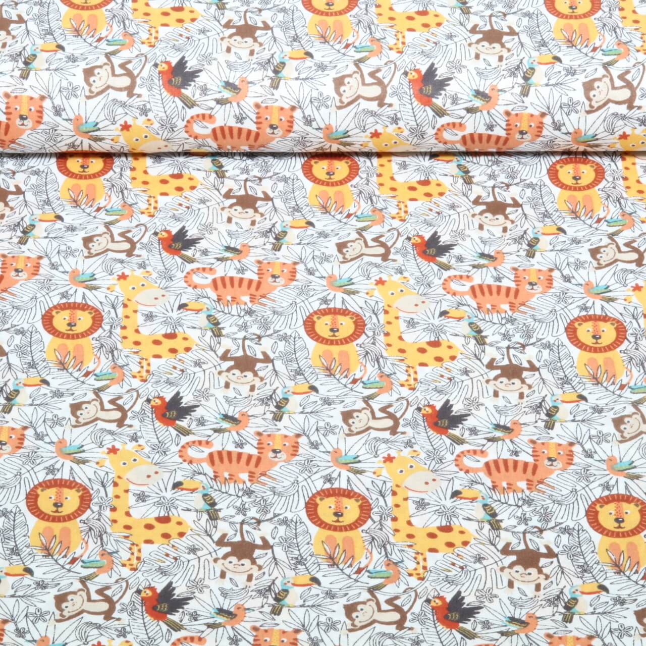 Baumwoll-Webware - Dschungeltiere Weiß Multicolor