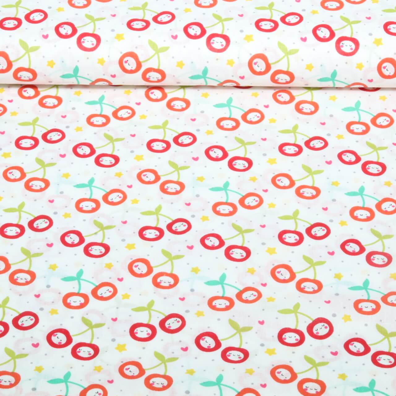Baumwoll-Webware - Lustige Kirschen Weiß
