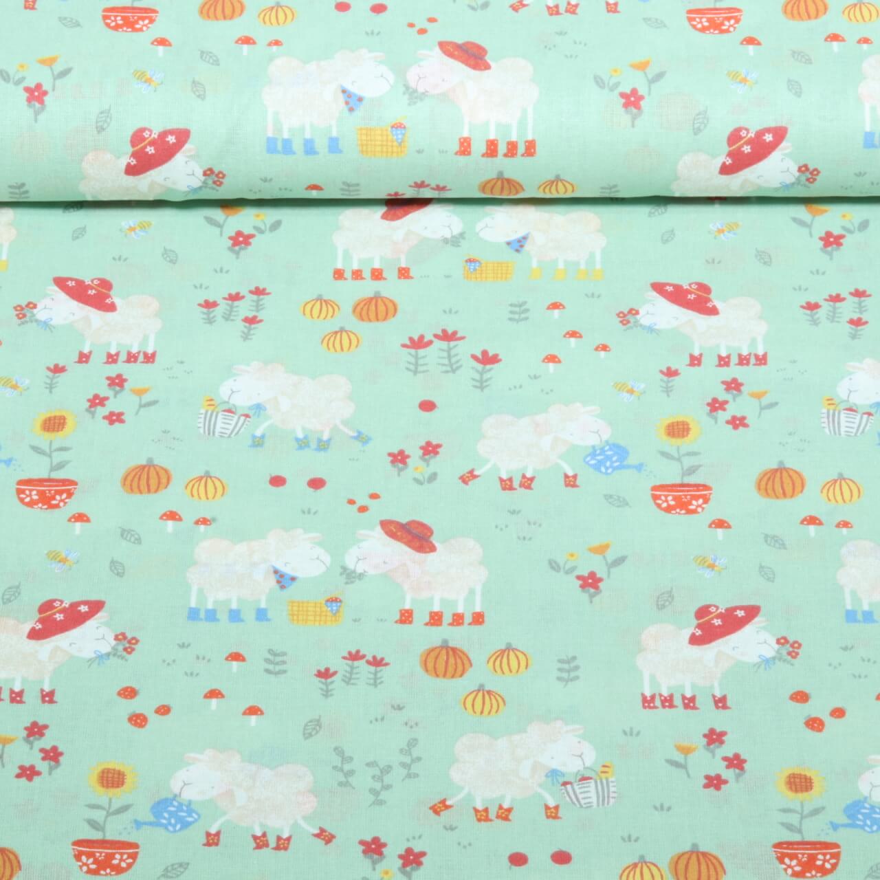 Baumwoll-Webware - Schafe Mint