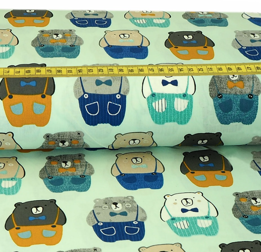 Baumwolle Bär in Latzhose Hellmint Überbreite