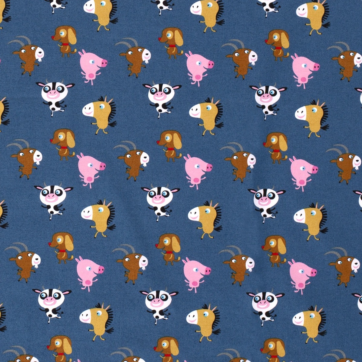 Baumwolle Bauernhoftiere auf Rauchblau