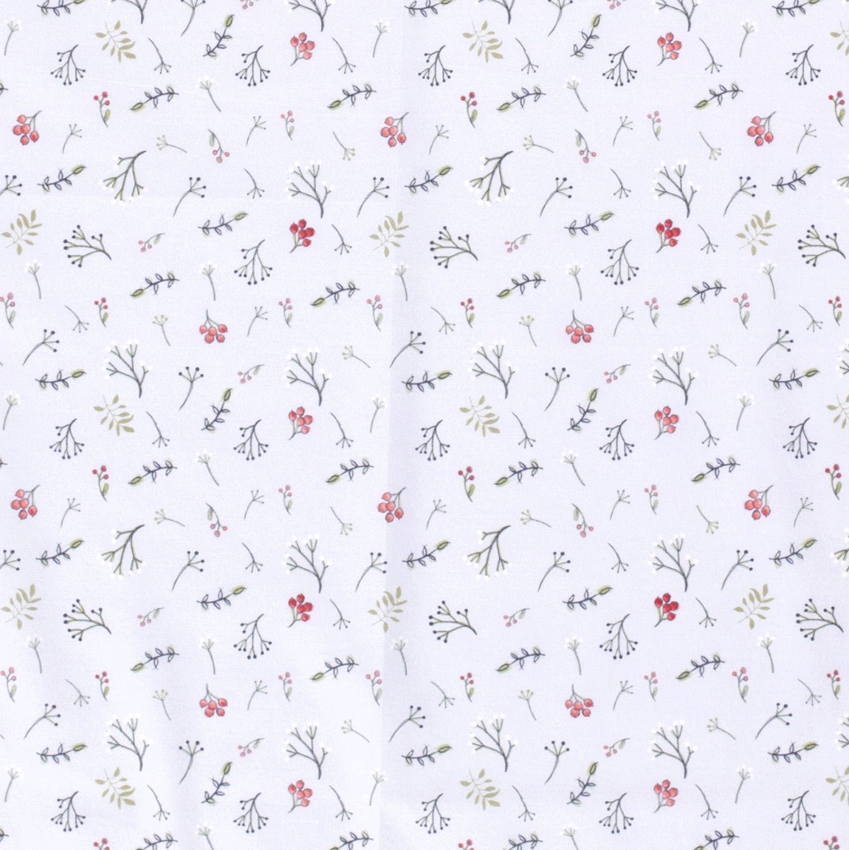 Baumwolle Blätter- und Beerenzweige auf Hellgrau