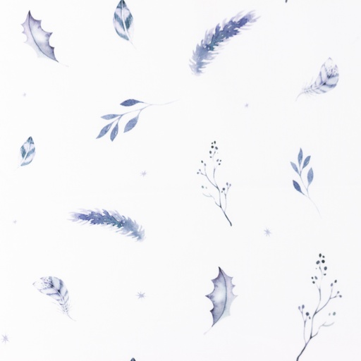 Baumwolle Blaue Blätter und Gräser auf Weiß Digital