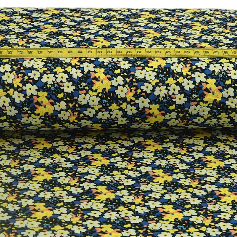 Baumwolle Blumen Hannerl Gelb/Royalblau