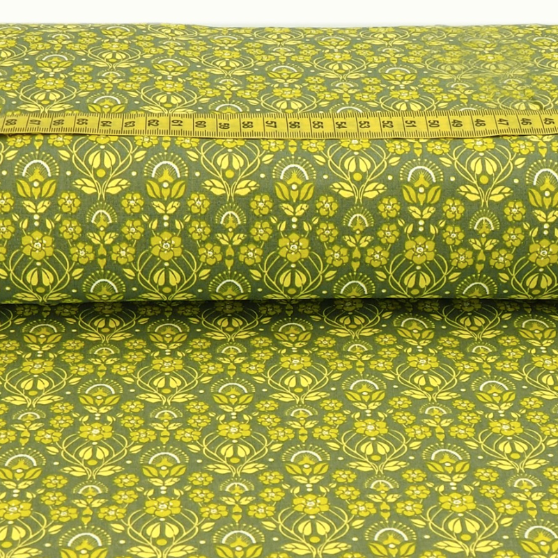 Baumwolle Blumenornamente Kiwi auf Khaki
