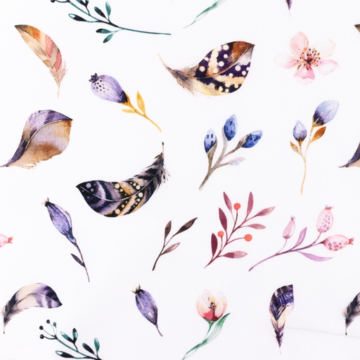 Baumwolle Boho-Federn und Blütenzweige auf Weiß Digital