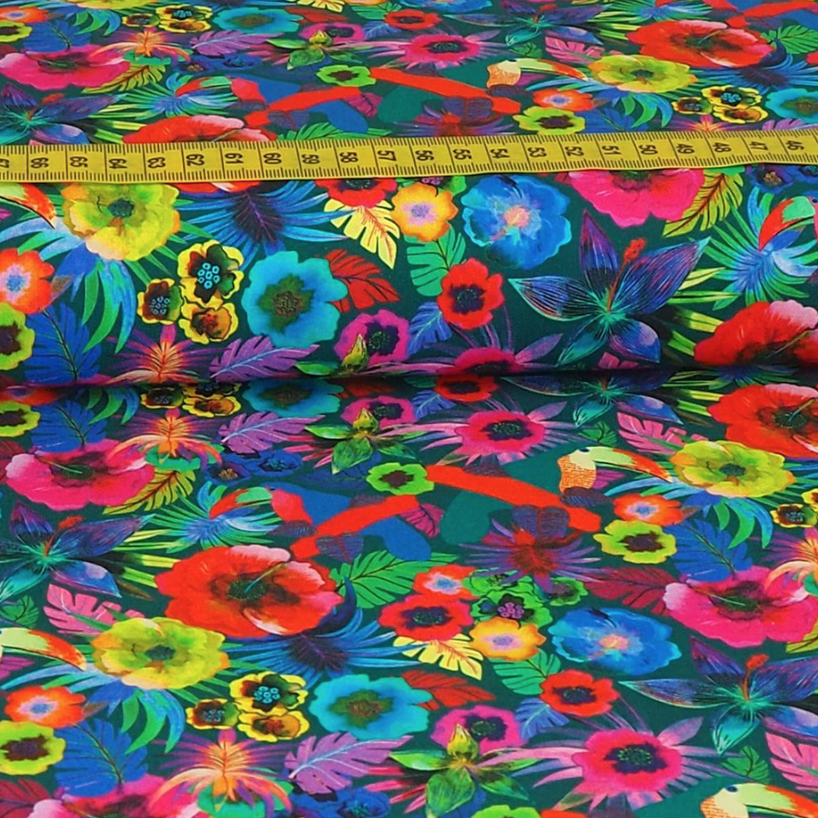 Baumwolle Bunte Blümlein auf Petrol Digital ÜBERBREITE