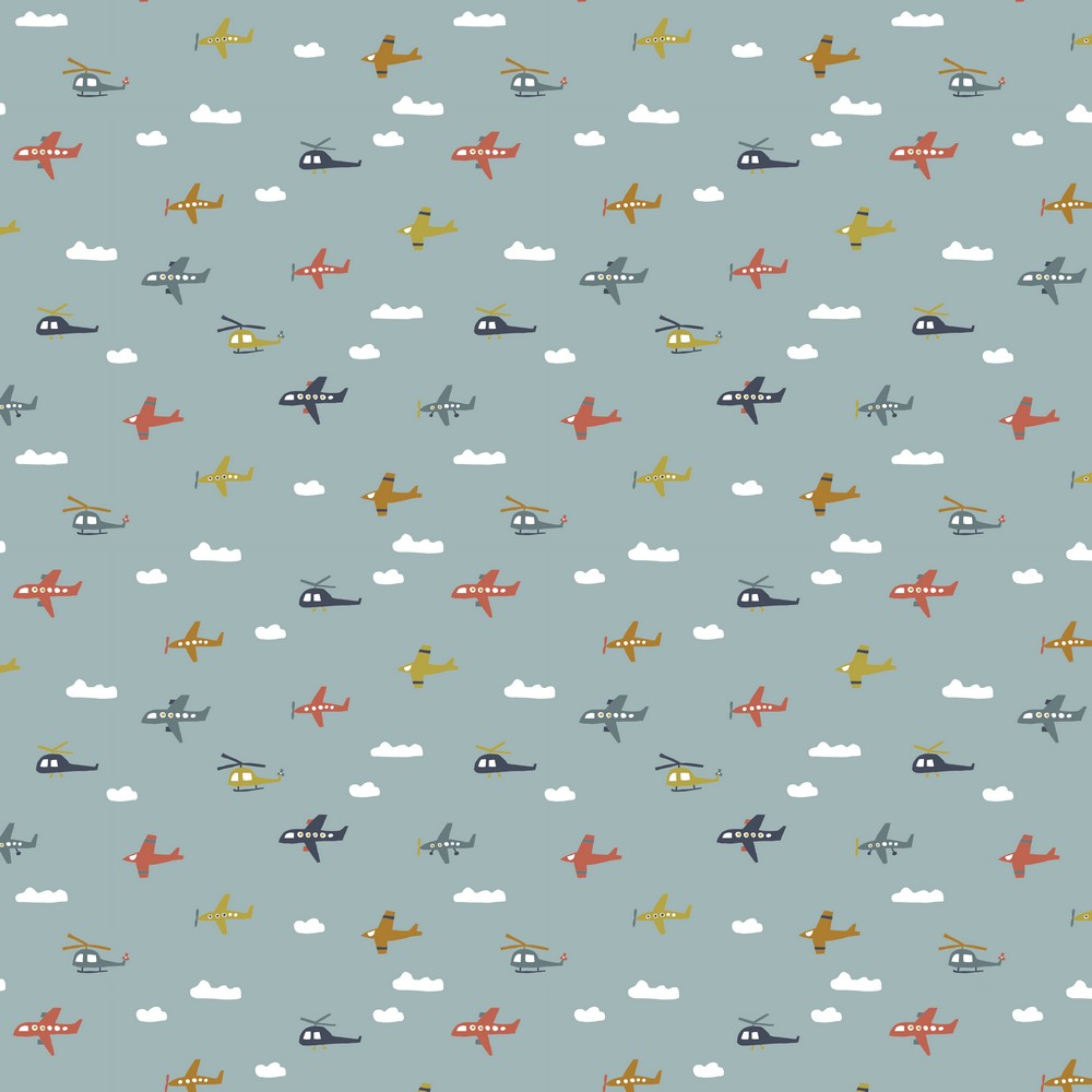 Baumwolle Bunter Flugverkehr auf Mintgrau