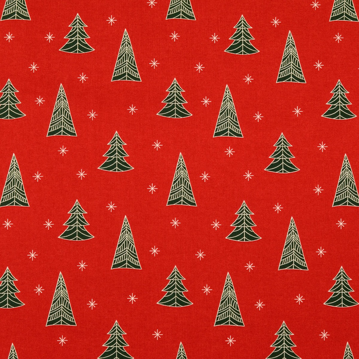 Baumwolle Christmas Trees & Stars auf Rot