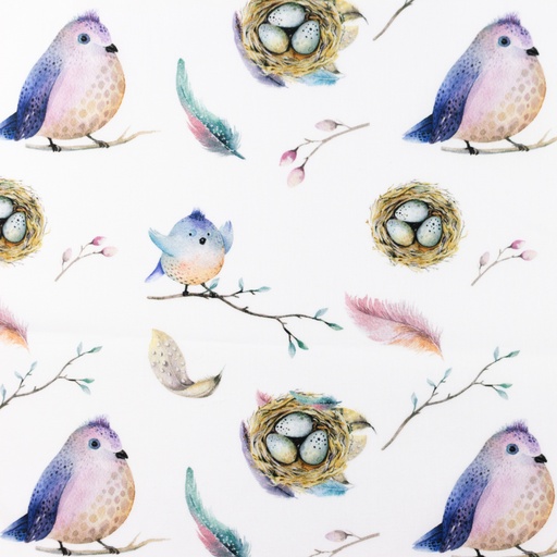 Baumwolle Federn & Vogelnest auf Weiß Digital
