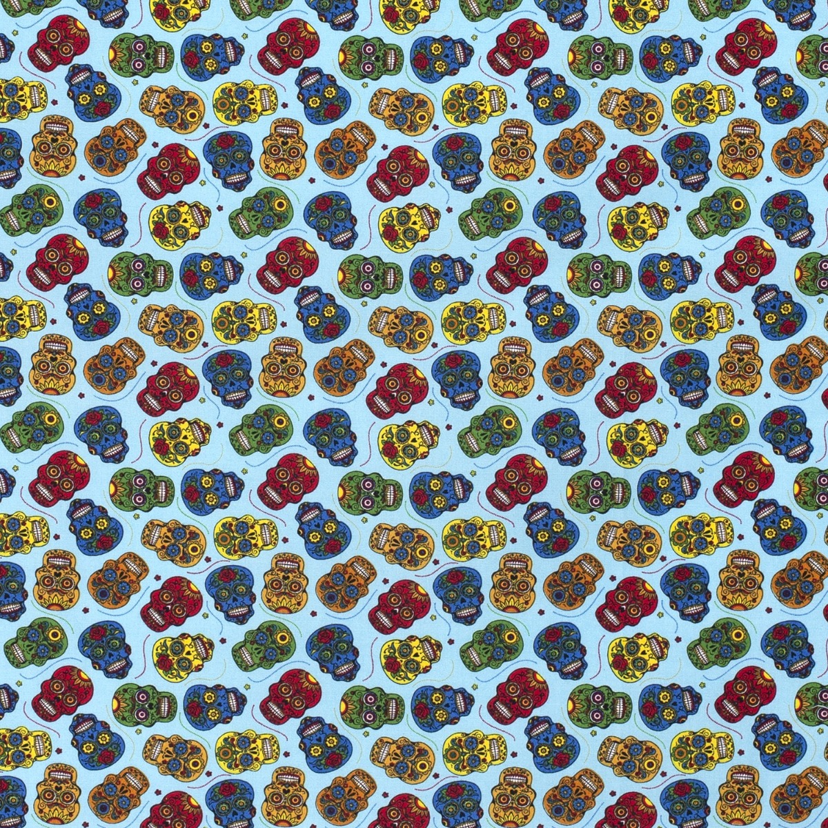 Baumwolle Flower Skulls auf Hellblau