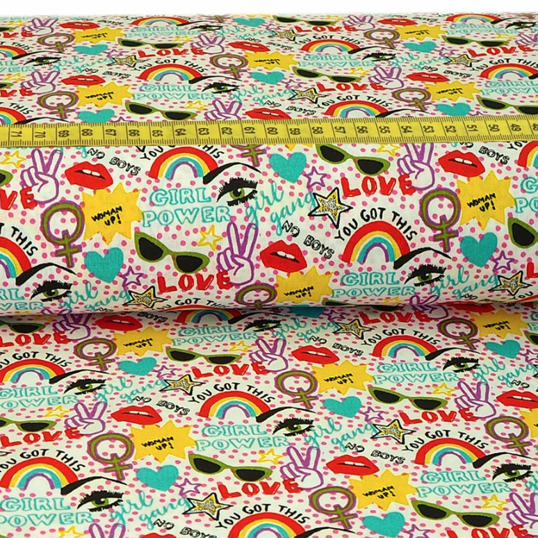 Baumwolle Girl Power mit Pink auf Cremeweiß