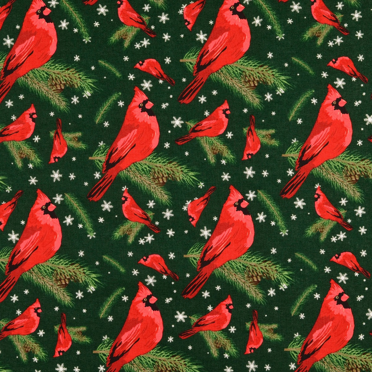 Baumwolle Golddruck Christmas Christmasbird auf Dunkelgrün