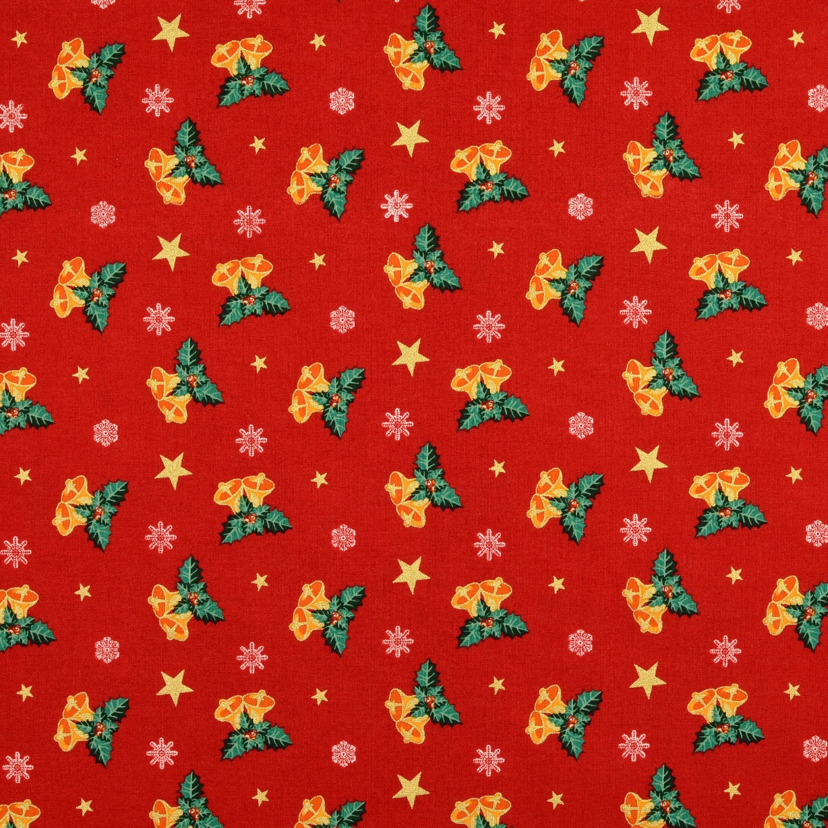 Baumwolle Golddruck Christmas Weihnachtsglocken auf Rot