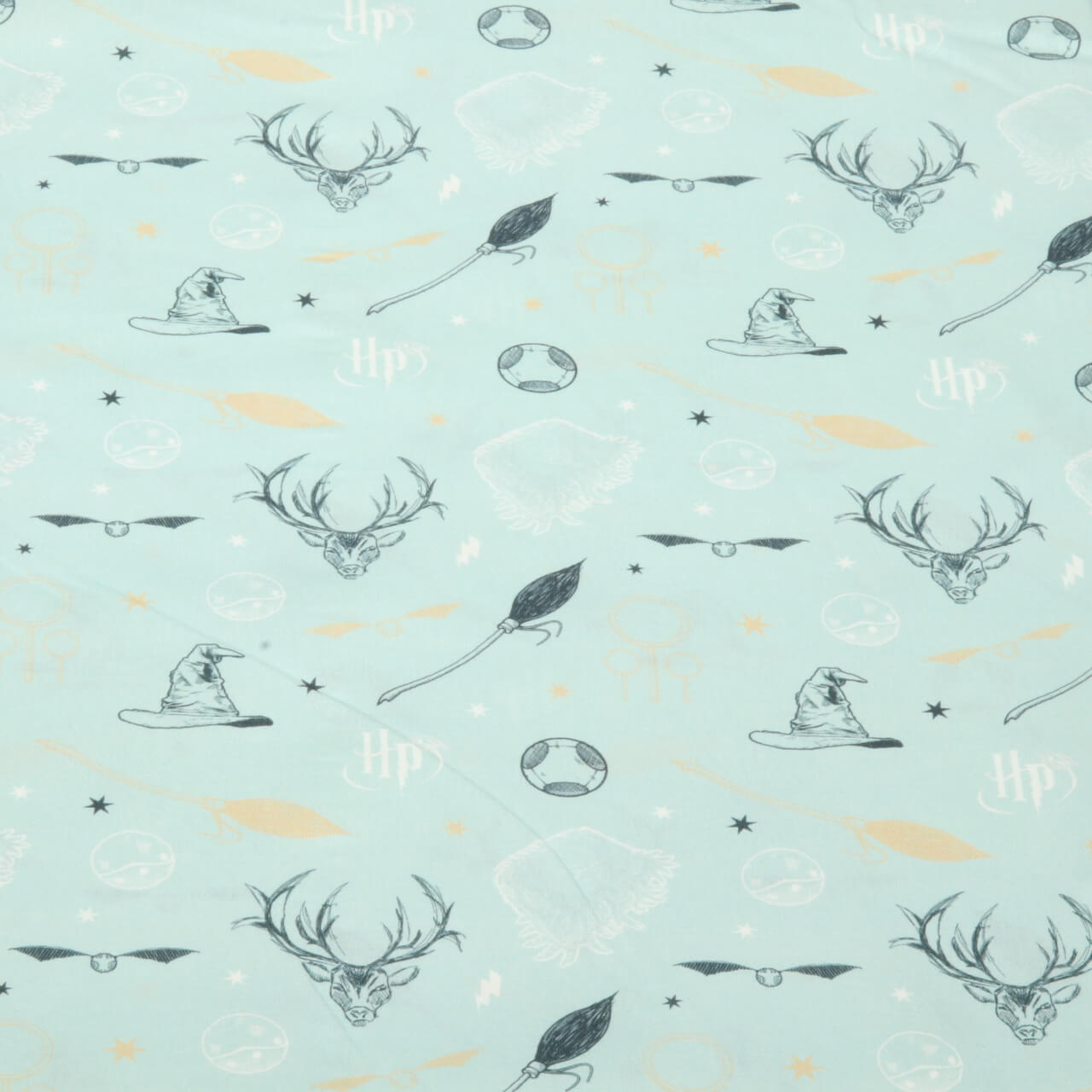 Baumwolle Harry Potter Logo und Sprechender Hut auf Blau Lizenz Digital